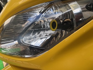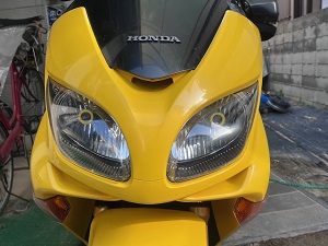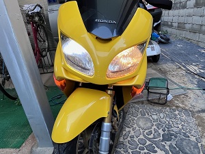 2022年1月23日。納車。エプシロンは諦めた。ヤフオク、メルカリ、ジモティで物色。同じものが転載されていることもあるがヤフオクにはなくメルカリにあった。 イエローモンキーと記載された黄色のFORZA(MF08)に一目惚れ。 15日にコンタクトを取り16日に入金。翌週末に間に合うというので。 (2022/1/23) |
