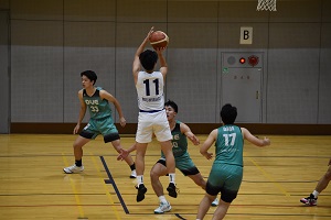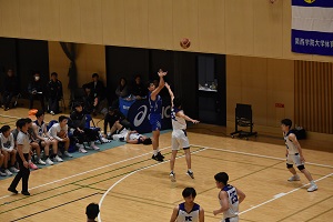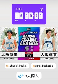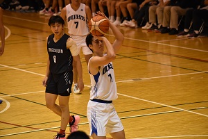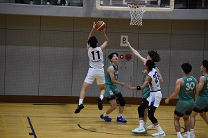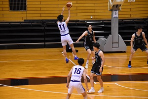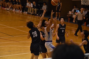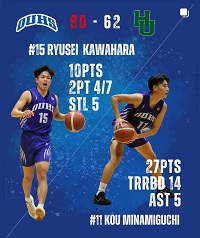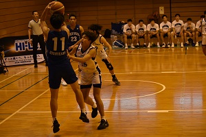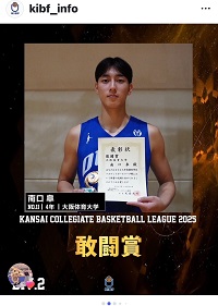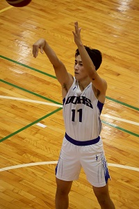10/5は阪南大会場でびわこ成蹊スポーツ大学と76-62で勝利。14得点12リバウンドでダブル。この日はシュートタッチが悪かった。ロースコアでびわこ成蹊の太郎のデータが生きたのかも。