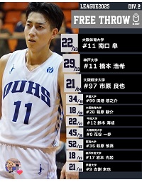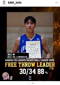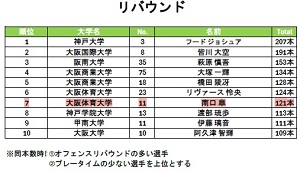 スタッツランキングが発表された。 フリースローランキングは1位、得点ランキングは4位、リバウンドランキングは7位だった。 プレータイムが短い中ではよく健闘したかと思う。 来週はいよいよ入替戦、対戦相手は関学に決まった。