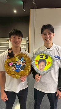 25日から31日までつかの間のOFF。 28日午後に一次帰省し夜に太郎と一歩の3人で練習していた。 その間私は保護者と飲み会だったので、練習終わりに3人とも呼んで夕食をご馳走しておいた。 左写真は大学の教学の壁にでかい写真として貼られているらしい。各部のキャプテンだと思う。来年6月くらいまで貼られているらしいけど一般で見れるんかいな?