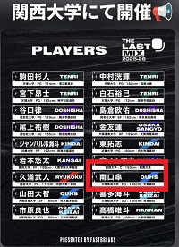 関西の1部2部の4回生からから選抜されるイベント。会場は関西大学。 |